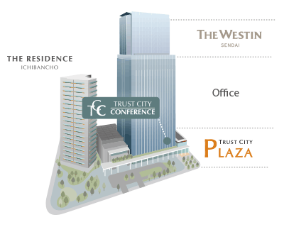 | トラストシティプラザ | 1階~3階は飲食・物販・サービス、東北の食材を味わえる銘店など多彩な店舗が凝縮する「トラストシティプラザ」が広がります。 当施設と同フロアにコンビニエンスストアもございます。 |